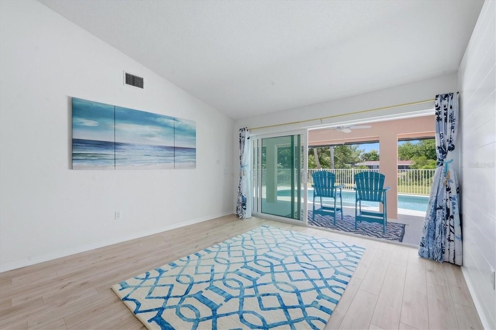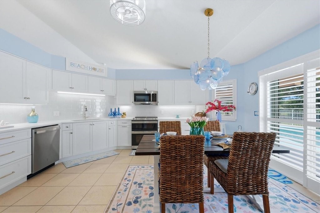 Experience the ultimate waterfront lifestyle in paradise with this beautifully updated, coastal-inspired home perfectly positioned along the scenic Amberjack Waterway. Offering shallow boating access to Coral Creek, Lemon Bay, and the Gulf of Mexico, this property is ideal for those who love to kayak, paddleboard, or cruise the backwaters right from their own backyard. With highly sought-after southwest rear exposure, you'll enjoy stunning sunsets over the water, all from your oversized lot featuring a spacious backyard and a private 5' x 20' dock. Designed for relaxed coastal living, the home showcases a light, airy interior with a serene beachy vibe and numerous high-quality updates throughout. The fully renovated kitchen (2026) is a standout, featuring Arctic White European frameless soft-close cabinetry, GE stainless steel appliances, quartz countertops, and a 4" x 12" Italian glass decorative backsplash, all perfectly positioned to overlook the pool and canal from the bright eat-in dining area. A stylish shiplap accent wall adds warmth and character, while new luxury vinyl plank flooring flows through the main living areas and primary suite. Plantation shutters, updated closet interior doors, modern fixtures, and ceiling fans complete the polished, move-in-ready feel. Peace of mind comes with a long list of major improvements, including impact-resistant windows and doors, a tile roof (2018), water heater (2022), A/C system (2023), impact-rated garage door (2023) & new soffits around entire home (2023), and freshly painted exterior (2024). Step outside to your private tropical retreat, where the pool area invites you to relax and unwind, enhanced by a new aluminum pool fence (2023), spa pump (2024), and pool pump (2025)-perfect for effortless outdoor enjoyment year-round. The spacious primary suite serves as a tranquil escape, featuring crown molding, plantation shutters, LVP flooring, a large walk-in closet, and peaceful views of the pool and waterway. All guest bedrooms are generously sized and include walk-in closets, offering comfort and privacy for family and visitors alike. Additional features include a decorative surfaced concrete driveway, an oversized two-car garage with a freshly painted floor, well-fed irrigation, and a preventative termite protection plan. Located just minutes from pristine Gulf beaches, golf courses, restaurants, and shopping, this exceptional waterfront home delivers the perfect combination of luxury, convenience, and laid-back Florida living-your own piece of paradise awaits.